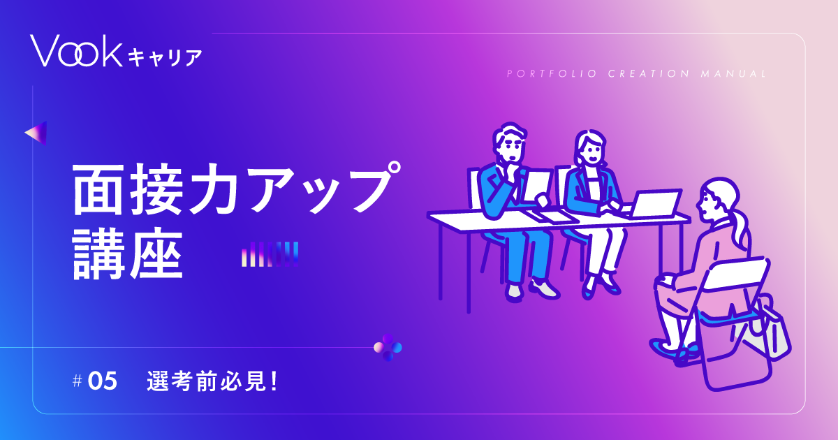 Vookキャリアでは本記事をもう少し深堀りした面接講座を実施しており、応募企業ごとに企業の特徴や求められる人物像などもお伝えさせていただいております。