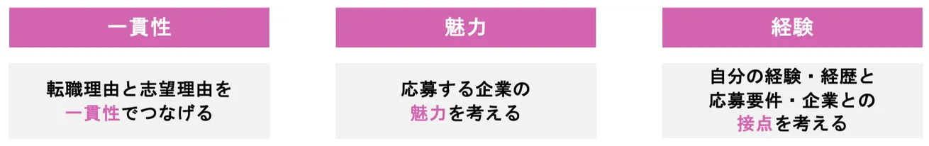このような流れを意識し、転職理由と志望理由、将来の展望に一貫性を持たせましょう。