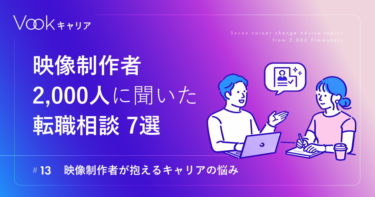 映像の仕事を続けていると、 ふと立ち止まってしまう瞬間がある方も多いのではないでしょうか。 「このままでいいのかな」、「好きだけど、正直しんどい」、「誰に相談したらいいかわからない」 Vookキャリアには、日々こうした相談が寄せられています。 この記事では、実際に多い相談内容を7つご紹介します。
