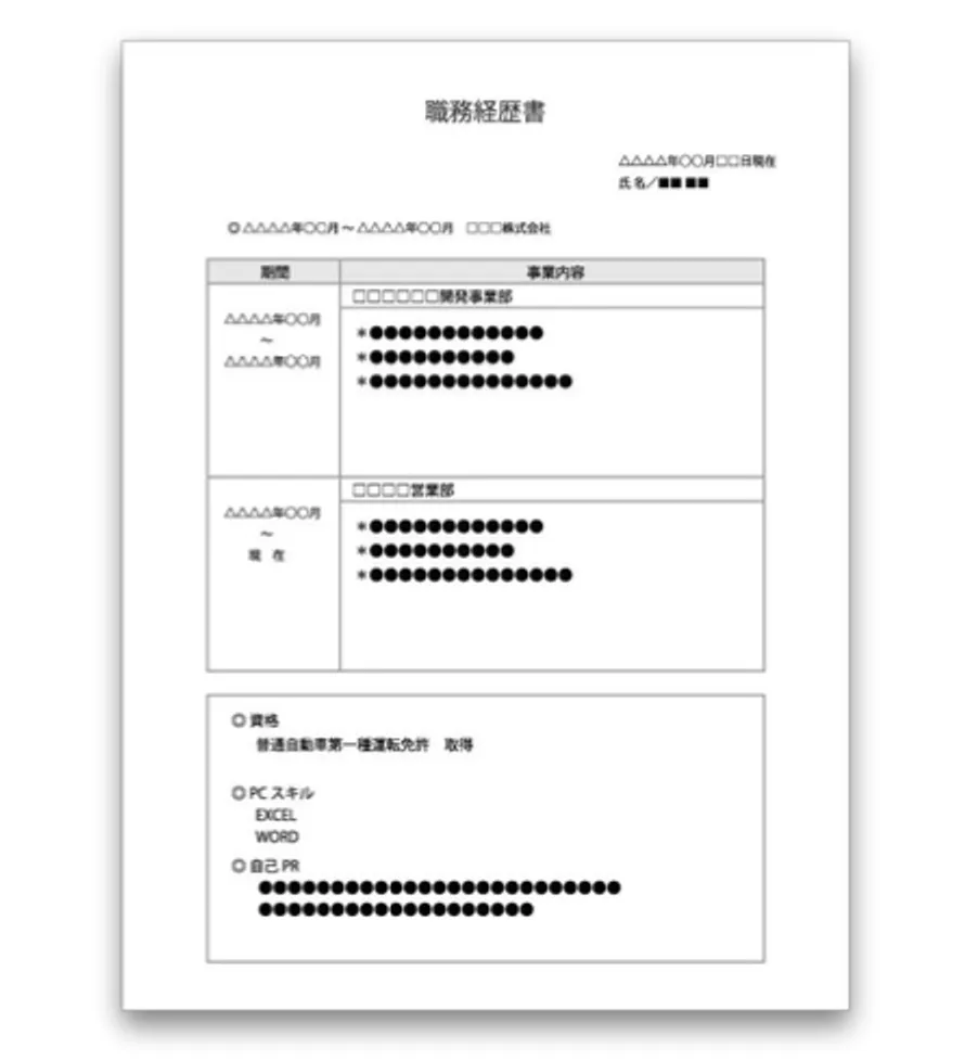 ⇒職務経歴書はA4サイズ2~3枚程度で、見出し等を付けて体系的に記載するように心がけましょう!
